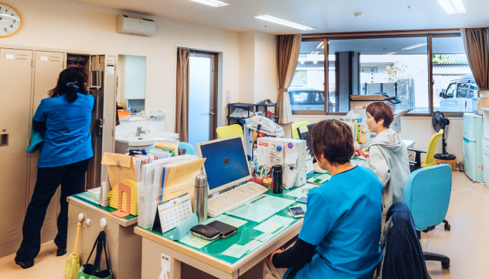安楽な介護方法を助言したり、ほかの職種の方と連携することで家族の介護負担を軽減し、よりよい家族関係が保たれるよう支援します。