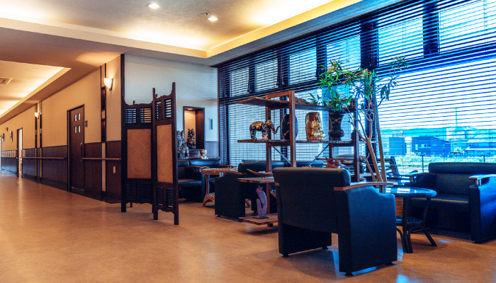 また、施設内には木などのみどりを取り入れ、心豊かな安らぎの空間を演出しております。
