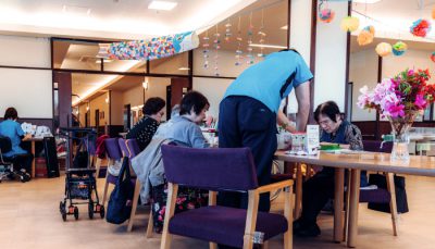 そのほか、音楽療法や回想療法などを取り入れて、個人を最大限に尊重した、尊厳のある生活を送って頂けるような介護を心掛けております。
