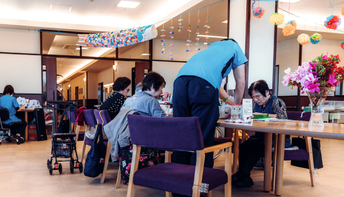 自宅で閉じこもりがちな高齢者に外出を促し、家庭以外の人とふれあい、社会との接点を取り戻しながら、健康チェック・日常生活介護・リハビリテーション・レクリェーションなど、心身の機能低下を予防し、ご家族の介護負担を軽減します。また、ご希望により食事・入浴・送迎などのサービスもご用意させていただきます。